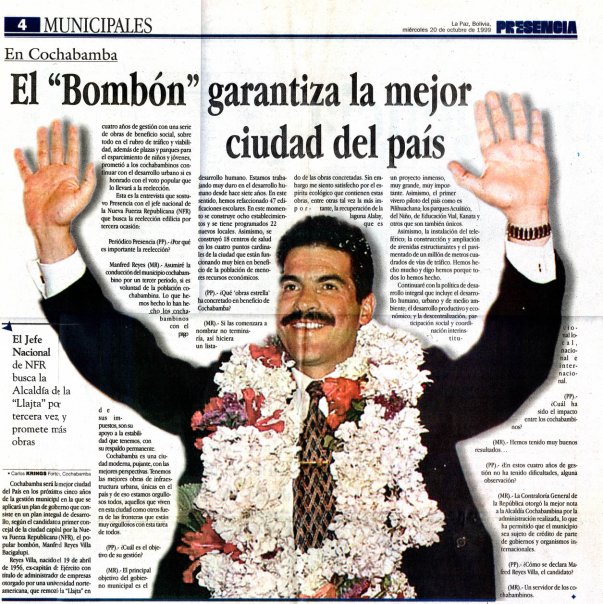 Lider y Político Boliviano. Fue Alcalde electo de la Ciudad de Cochabamba por 4 gestiones (1993-2000), asi mismo fue electo Gobernador del Departamento de Cochabamba (Ex Prefectura Departamental) en 2005 y principal Candidato Presidencial 2002 y 2008.